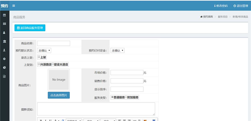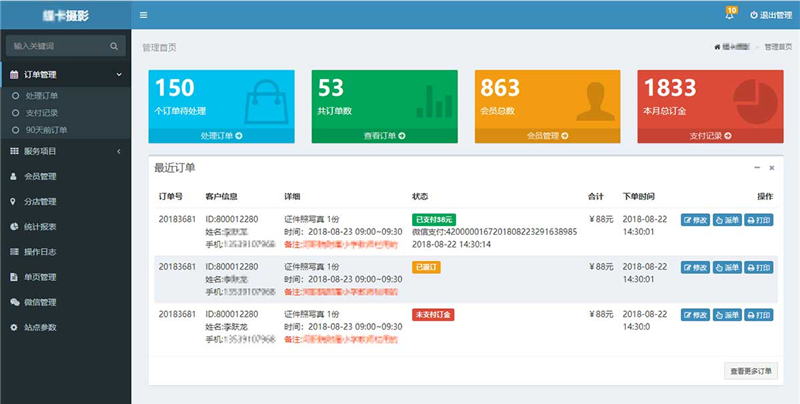 照(zhào)相(xiàng)館專門(mén)開發設計(jì)的檔期預約管理(lǐ)系統,支持多分(fēn)店(diàn)管理(lǐ),産品服務管理(lǐ),日(rì)程安排,預約訂單管理(lǐ),在線上傳下載底片,微信無感登陸,微信在線支付等功能。